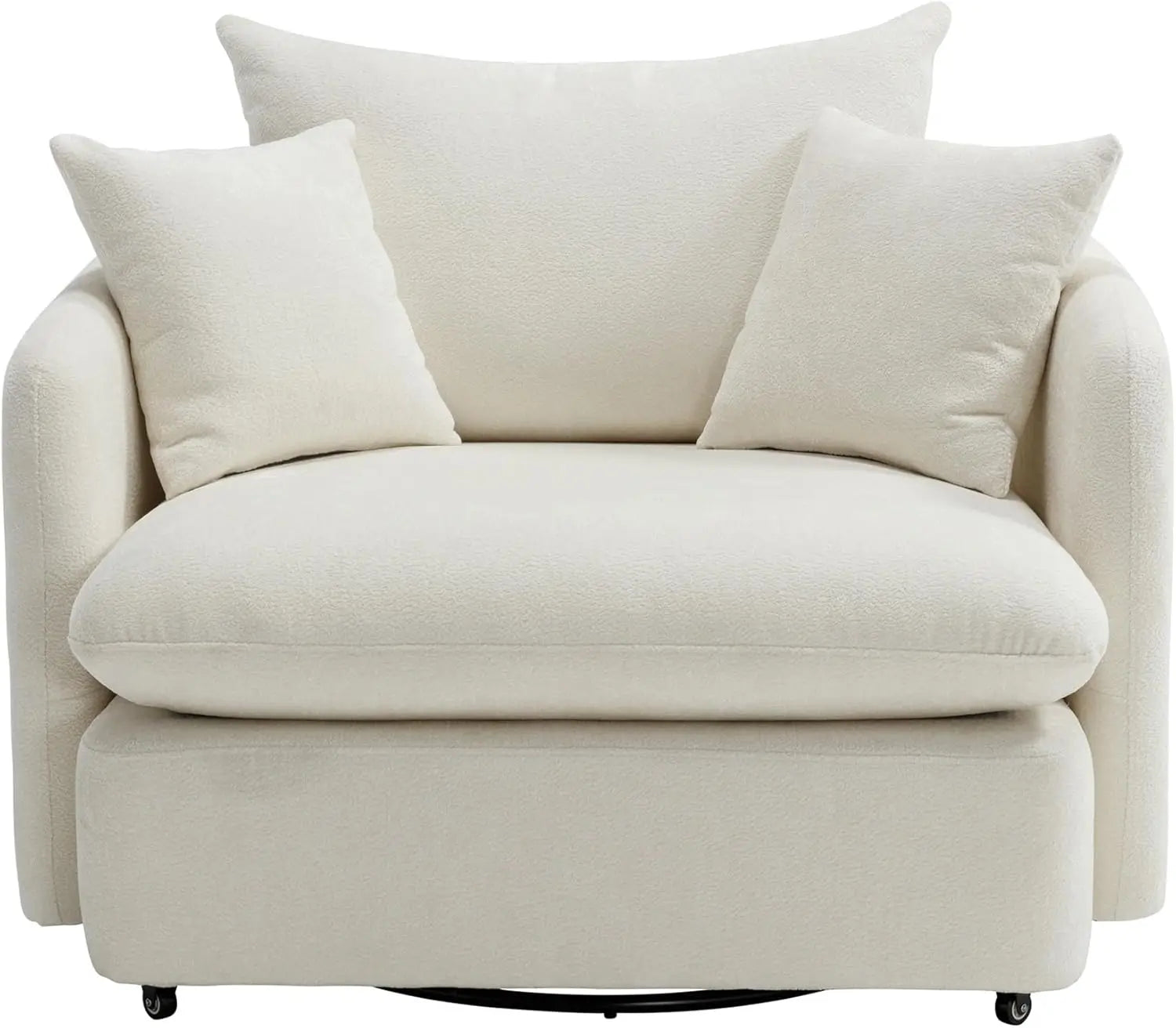 【Cloud Back Cushion, Deep Pressure Relief】Large cushion filled with thickened hollow fiber that adapts to the curve of the head and neck. Sink into plush comfort with dual-layer cushioning—high-density sponge and pocket springs for ergonomic support. 27.6 inch upholstered deep seat swivel chair, perfect for marathon reading sessions or movie nights.