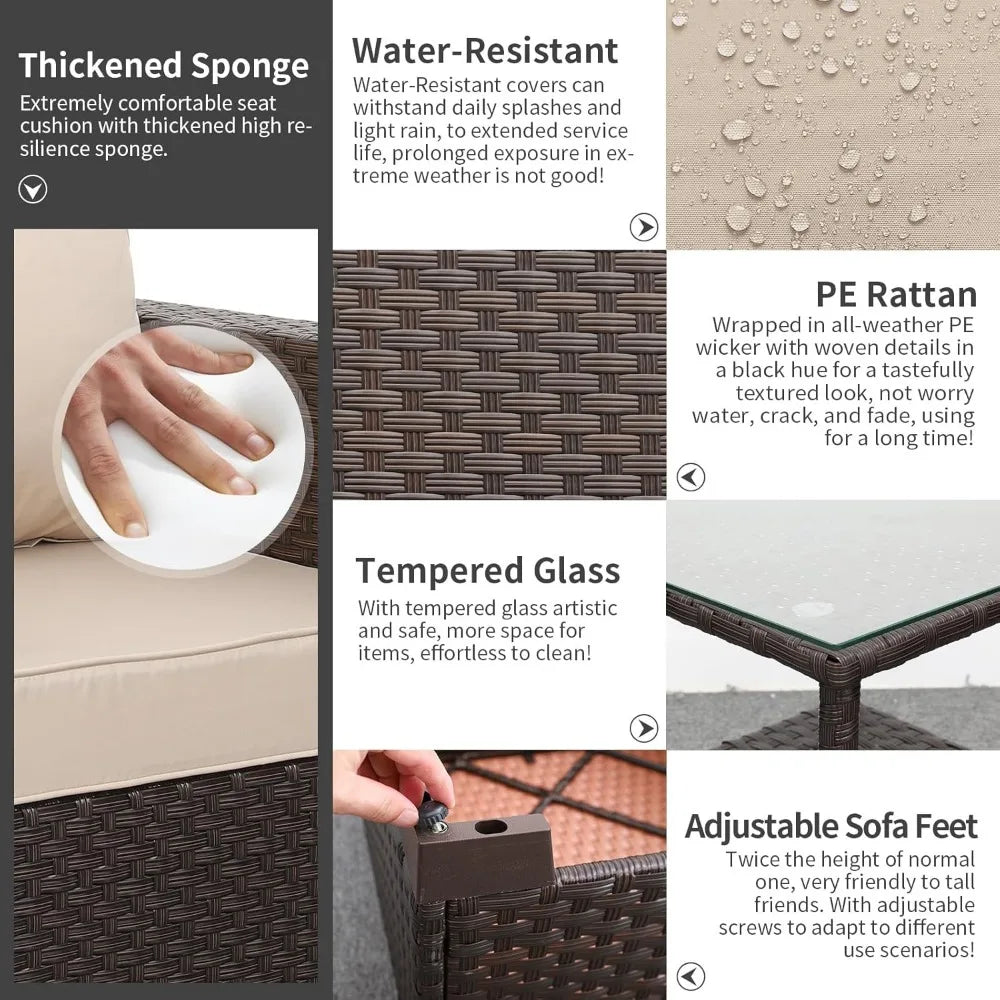 - Highly Adaptable: bring versatile and exciting style and seating space with this outdoor patio furniture set with differentiated design; 2-layer table with glass allows placing multiple items, suitable for any decorative fashion and scene, greatly enriching your outdoor life